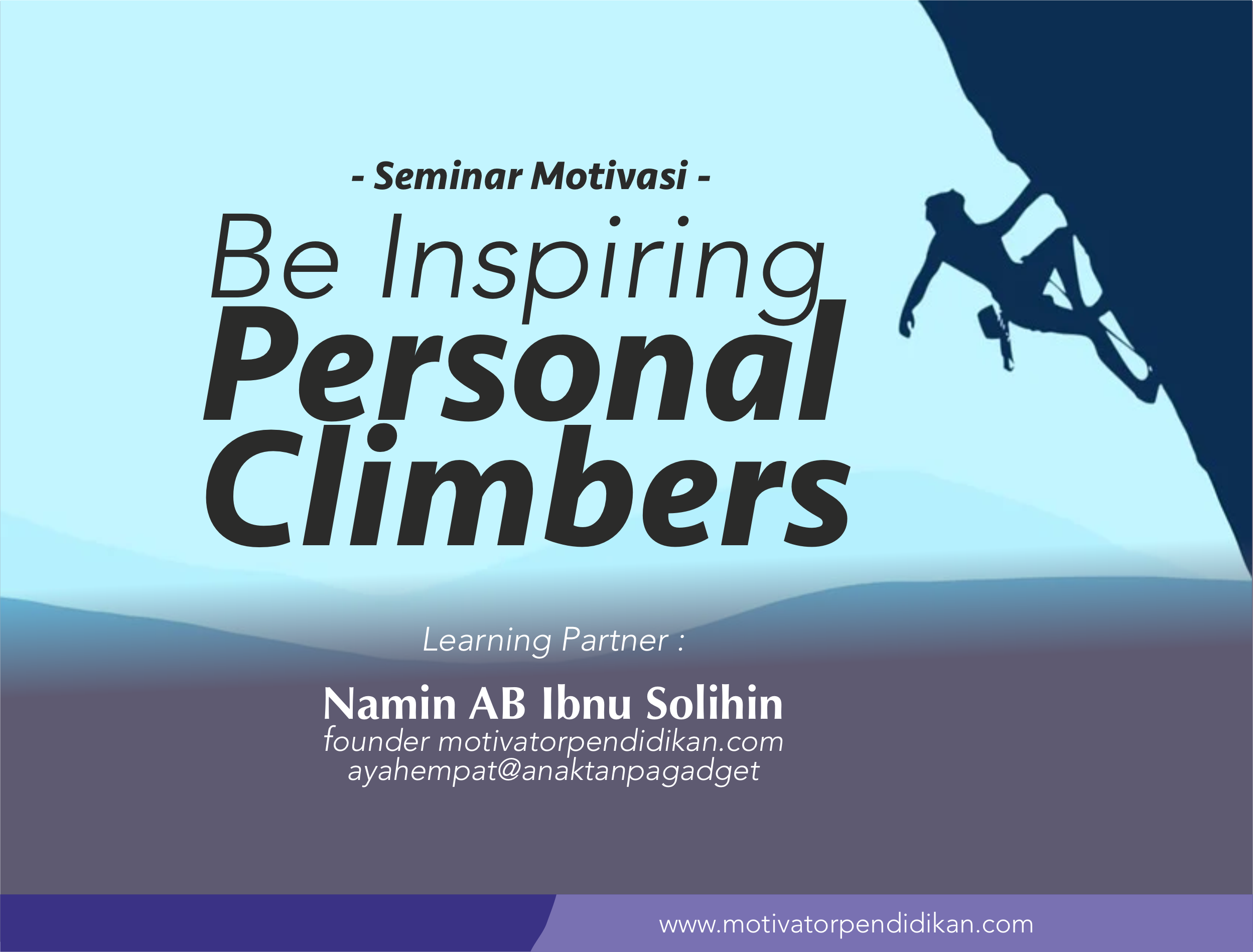 motivatorpendidikan.com – Bagi teman-teman yang membutuhkan Contoh Judul Motivasi Seminar Pelajar dan Mahasiswa, berikut ini adalah beberapa contoh judul seminar pendidikan yang telah disampaikan oleh Namin AB Ibnu Solihin founder motivatorpendidikan.com dan ayah empat @anaktanpagadget. Semoga bermanfaat ! Kenali diri, lejitkan potensi, raih prestasi Menyambut Masa Putih Biru yang menyenangkan Kiat Memilih Program Studi-Lejitkan Potensimu…